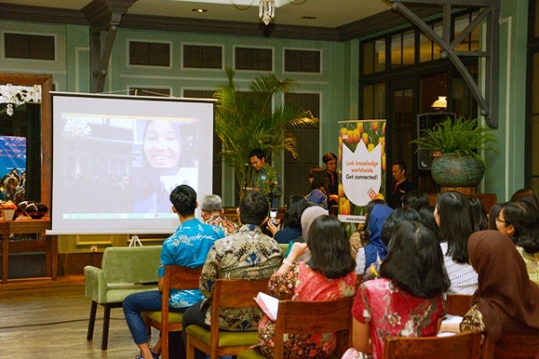 Video conference dengan para mahasiswa Indonesia di Belanda di acara StuNed Awardee Welcoming Session untuk 55 Awardee StuNed 2018 di Aston Kuningan Suites, Jakarta Selatan, Minggu, 20 Mei 2018 (KalderaNews/Fajar H)
