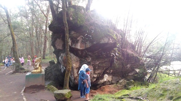 | Pengunjung melintasi Legenda Batu Tulis di Telogo Warno-Pengilon, Dieng (KalderaNews/JS de Britto) |