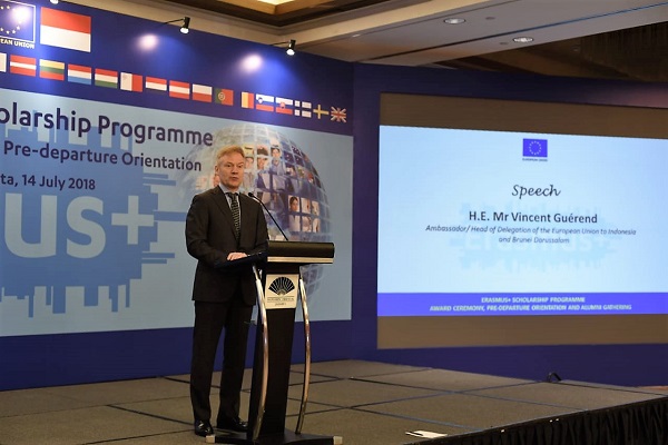 Duta Besar Uni Eropa untuk Indonesia, Vincent Guérend menegaskan Beasiswa Erasmus+ ini memberikan kesempatan yang sangat berharga untuk menambah wawasan tentang kebudayaan, bahasa, serta sistem akademik yang ada di Eropa, serta bertemu dengan berbagai orang di perguruan-perguruan terbaik di Eropa.