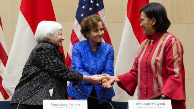 JAKARTA, KalderaNews.com — Menteri Keuangan AS Janet Yellen dan Menteri Keuangan Indonesia Sri Mulyani Indrawati menandatangani Perjanjian Infrastruktur dan Keuangan senilai Rp 10,2 triliun ($698 juta) di Washington, 14 April 2023, demikian siaran pers Kemenlu AS hari ini.