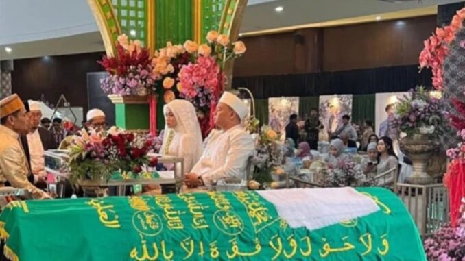 Pemandangan paling mengharukan adalah kehadiran jenazah almarhum H. Ipan di lokasi akad nikah. Jenazah diletakkan tepat di samping putranya yang tengah bersiap mengucapkan ijab kabul, terbalut kain hijau bertuliskan kalimat tauhid.